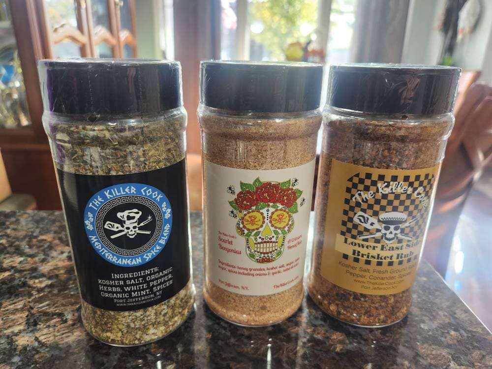 The Mediterranean spice blend is my absolute favorite! I also really enjoy the other 2 in the attached photo. I also get a cool killer cook sticker with every order!